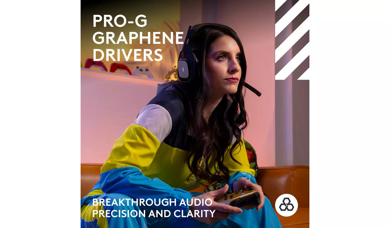 LOGITECH G ASTRO A50 LIGHTSPEED WIRELESS GAMING HEADSET + BASE STATION. PRO-G GRAPHENE drivers with live edge technology deliver groundbreaking sound quality and clarity. LIGHTSPEED wireless for pro-grade performance on console. 48 kHz high resolution microphone. Wireless dual-device mixing with Bluetooth. Game/Chat balancing on Xbox and PC directly from the headset. Advanced G HUB and mobile app software provides powerful audio processing on the 7-core DSP that's saved on your headset as you switch between systems.