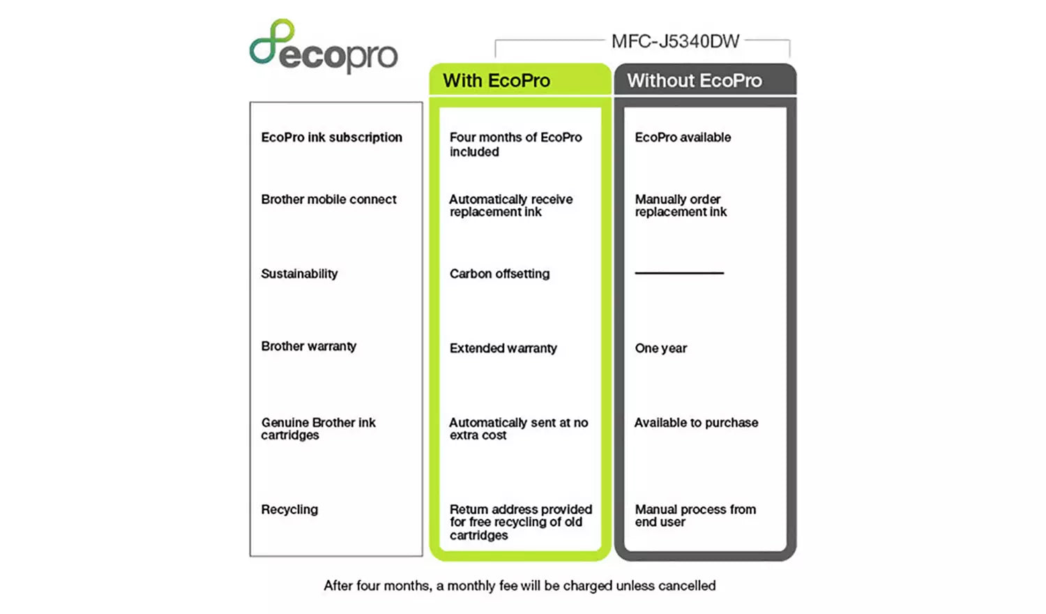 Free 4-month trial to the EcoPro subscription & lifetime support for your printer.