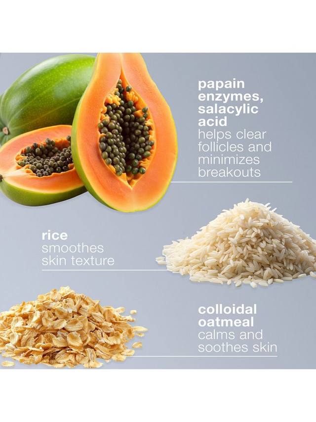 Unique Rice-based powder formula activates upon contact with water, releasing Papain, Salicylic Acid and Rice Enzymes that micro-exfoliate dead cells, instantly leaving skin smoother and brighter. Our unique Skin Brightening Complex helps to balance uneven skin pigmentation while a super-soothing blend of Green Tea, Ginkgo and Colloidal Oatmeal helps to calm the skin, leaving it extraordinarily clear and refreshed. Formulated without artificial fragrances and colours. Certified cruelty-free by Leaping Bunny and PETA.