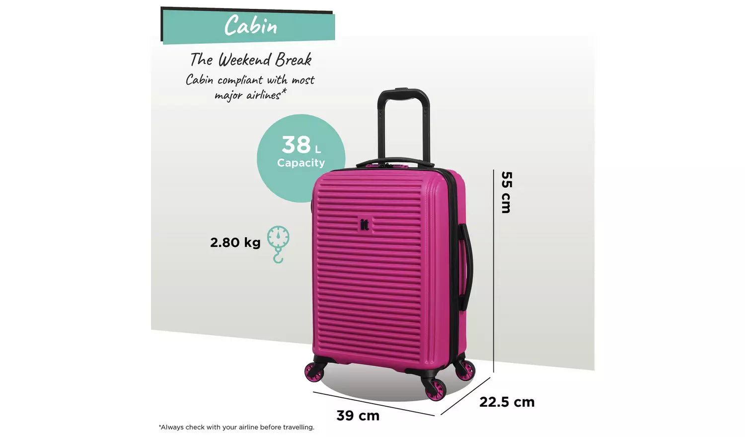 - Cabin friendly - always check with your airline as the cabin luggage dimensions can differ.