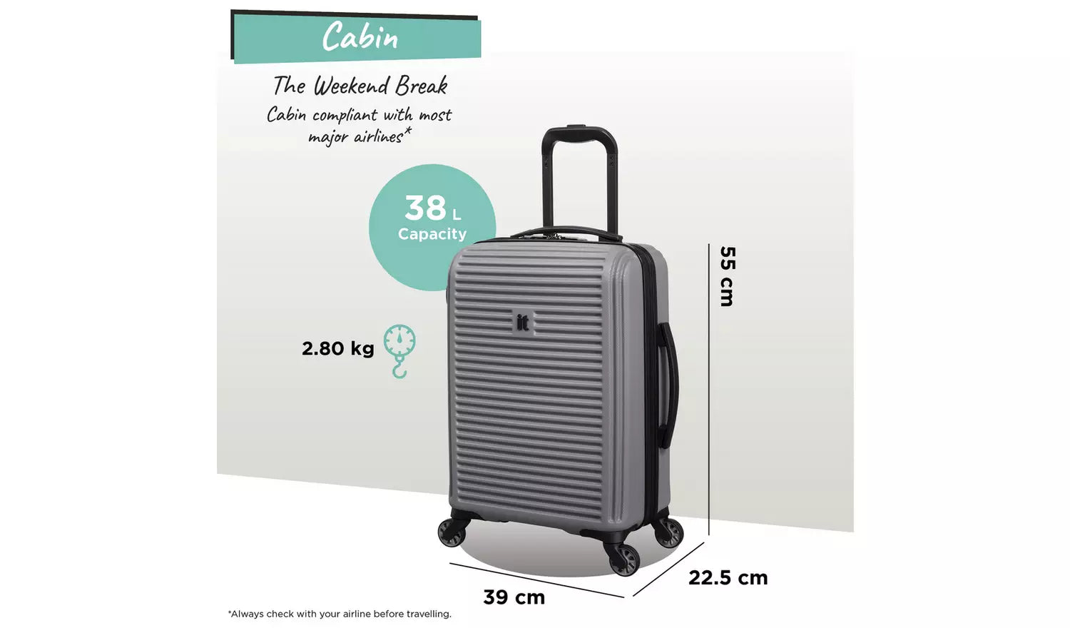 - Cabin friendly - always check with your airline as the cabin luggage dimensions can differ.
