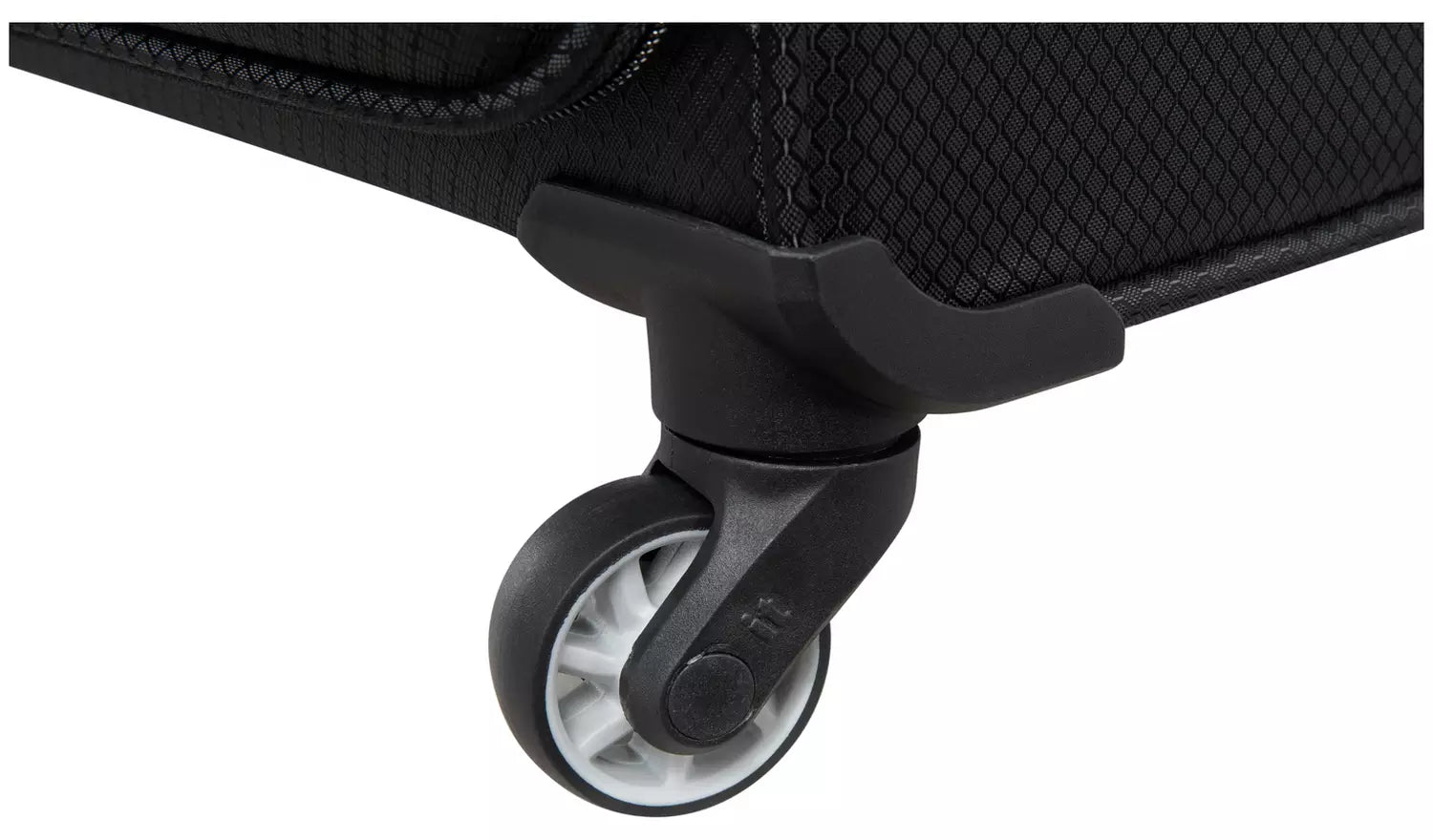 The Striving 3pc Suitcase Set in Black combines sleek design with durable, lightweight construction. Comprising cabin, medium, and large cases, it offers 180L of packing capacity, perfect for long holidays or family trips. The stylish padded effect design, complete with front pocket, provides a modern look, while the soft outer shell ensures easy handling and protection. Featuring a 4-wheel spinner system for effortless manoeuvrability and a fully lined interior with compression straps and organiser pockets for easy packing.