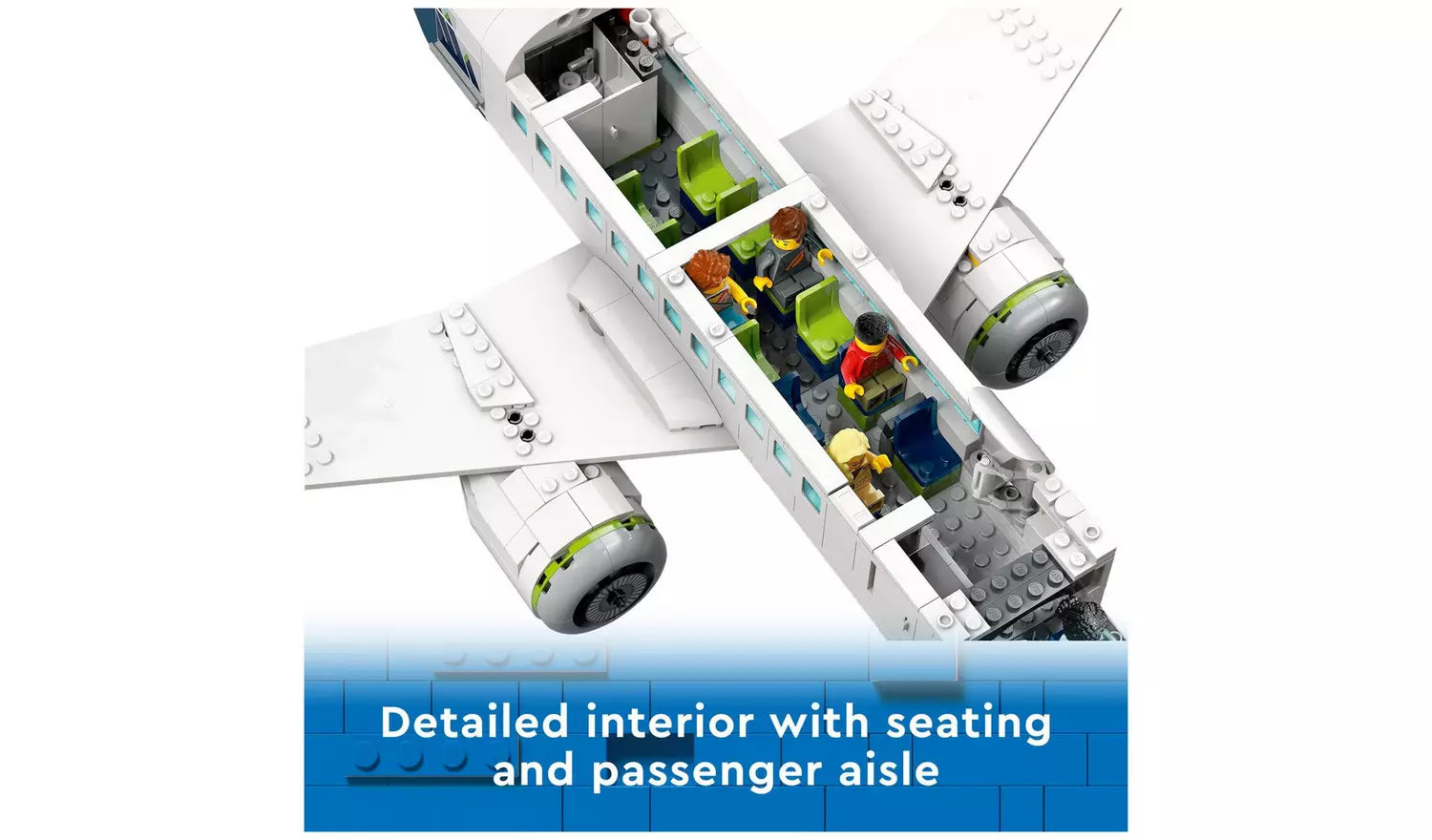- Here's a treat for fans of model planes. This 7+ LEGO City Passenger Aeroplane (60367) toy set is packed with realistic features and functions. The toy Passenger Airplane measures over 19 cm (7.5 in. ) high, 47 cm (18.5 in. ) long and 44 cm (17.5 in. ) wide.