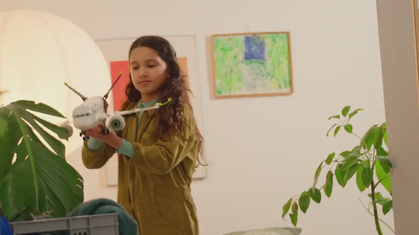 - 9 LEGO City minifigures: pilot, copilot, ground crew and passengers, a suitcase, camera, backpack, briefcase, walkie-talkie, 2 drinks cans and 2 cups.