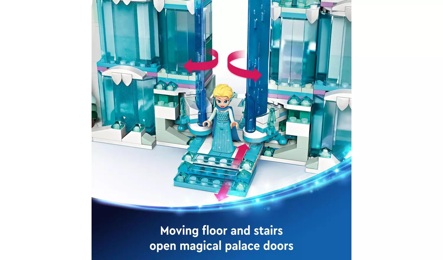 - Frozen fans can dive into endless play with this detailed LEGO Disney Frozen Elsa's Ice Palace (43244) building toy for 6-plus-year-old girls and boys. Inside the box of this LEGO Disney set, kids will find a 3-level ice castle toy with a movable floor that opens the magical doors, a falling chandelier, 2 bedrooms, Elsa's study with a desk where she can research ice crystals, a balcony, a buildable sledge and several story starter elements. The ice palace measures over 36 cm (14.5 in. ) high, 27 cm (10.5 in. ) wide and 14 cm (5.5 in. ) deep.