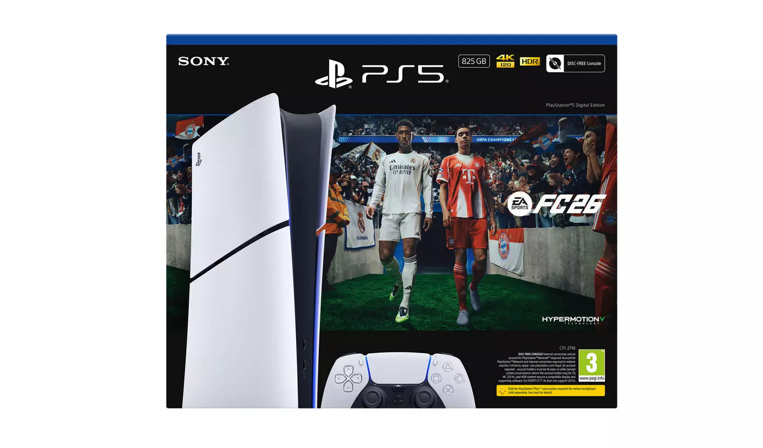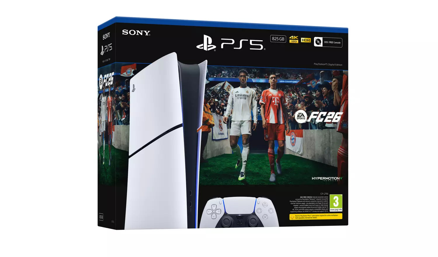 The Club is Yours on PS5. Play your way with the PS5 Digital Edition 825GB - EA Sports FC 26 Bundle. Experience true-to-football gameplay and lightning-fast performance on PS5. Haptic Feedback and Adaptive Triggers support deliver a more immersive experience in Career mode. Upgrade your experience and get closer to the action than ever before.