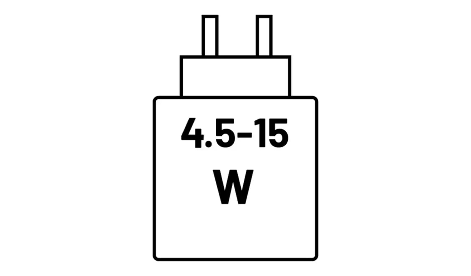- The required output of a suitable charging device is 4.5W minimum and 15W maximum.