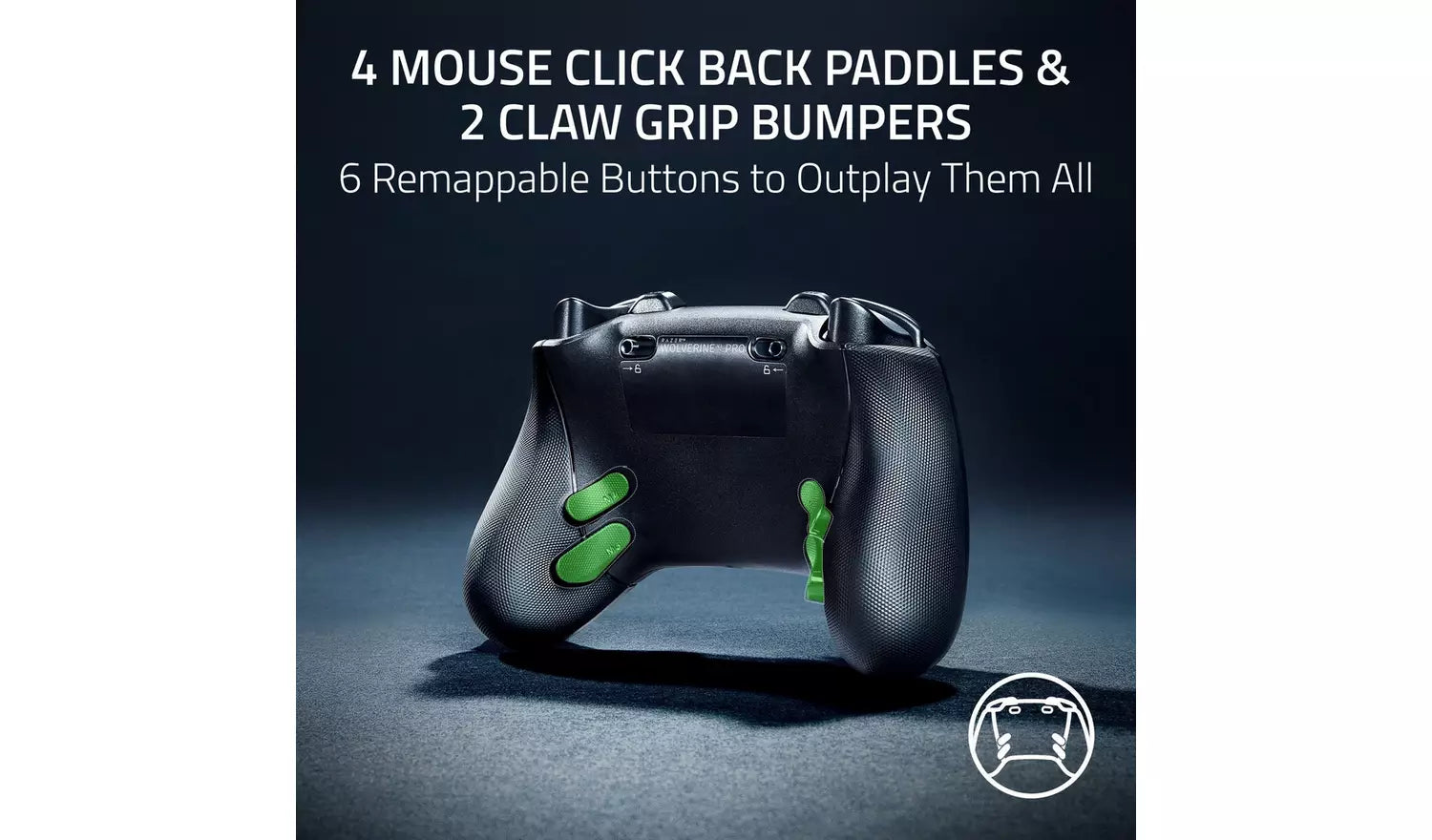 4 Mouse Click Back Paddles & 2 Claw Grip Bumpers. 6 Remappable Buttons to Outplay Them All. Enjoy the same ultra-responsive actuation found in our top gaming mice with 4 paddles built into the controller's ergonomic, rubberised handles - topped with 2 claw grip bumpers for even more control.