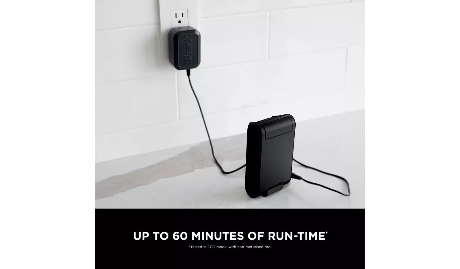 ALWAYS READY: Charging while stored on the dock, it's always ready for the next clean. Up to 60 mins* run-time (In ECO power mode, non-motorised tool). Detachable handheld vacuum. *In ECO mode, with non-motorised tool.