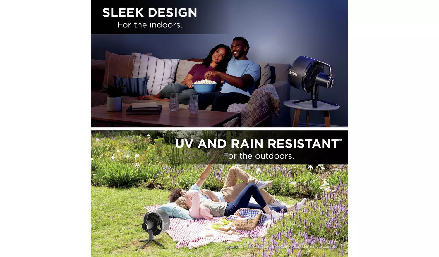 The Shark FlexBreeze Pro Mist indoor and outdoor fan with a portable outdoor misting system powerful, whisper quiet, and perfect for any space in your home, garden, or beyond. With a range of up to 20 meters and a weather-resistant design, this versatile fan offers great flexibility. Use it corded or cordless, as a tabletop or pedestal fan, in mist or dry mode. Enjoy up to 24 hours of cordless runtime at speed 1. Without oscillation or mist.