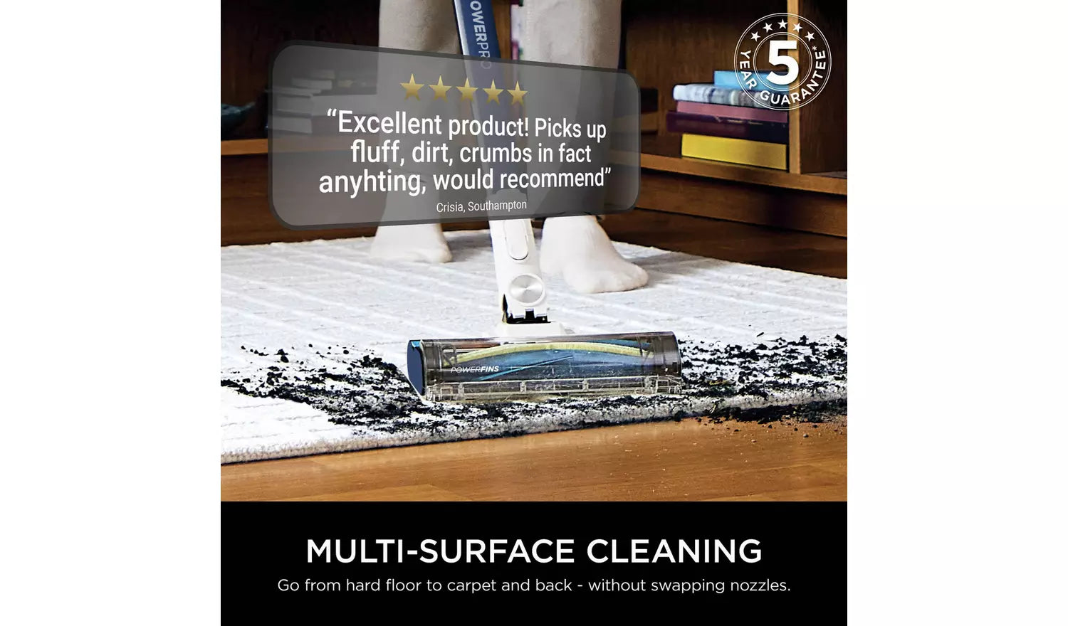 Shark PowerPro delivers powerful debris & hair pickup in a lightweight stick. Features Anti Hair Wrap Technology & FloorDetect Technology that automatically adjusts brush-roll speed based on floor type. Anti-Allergen Complete Seal captures and traps over 99.9% of dust and allergens. Flexology enables you to bend the wand to clean under furniture and fold for easy storage. 50 minutes runtime and transforms into a powerful hand vacuum.