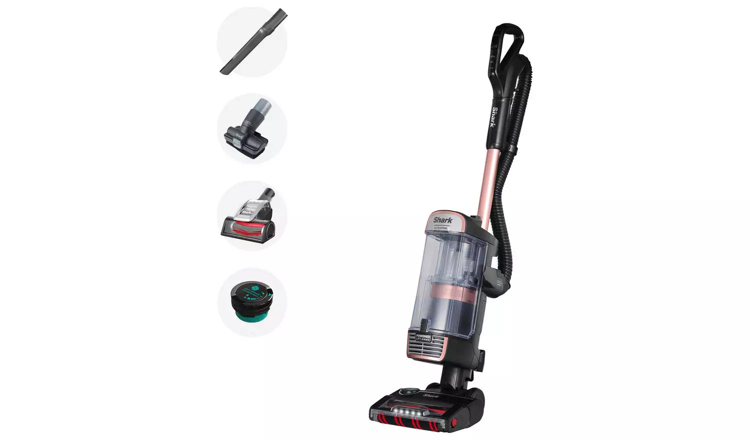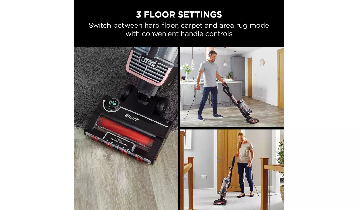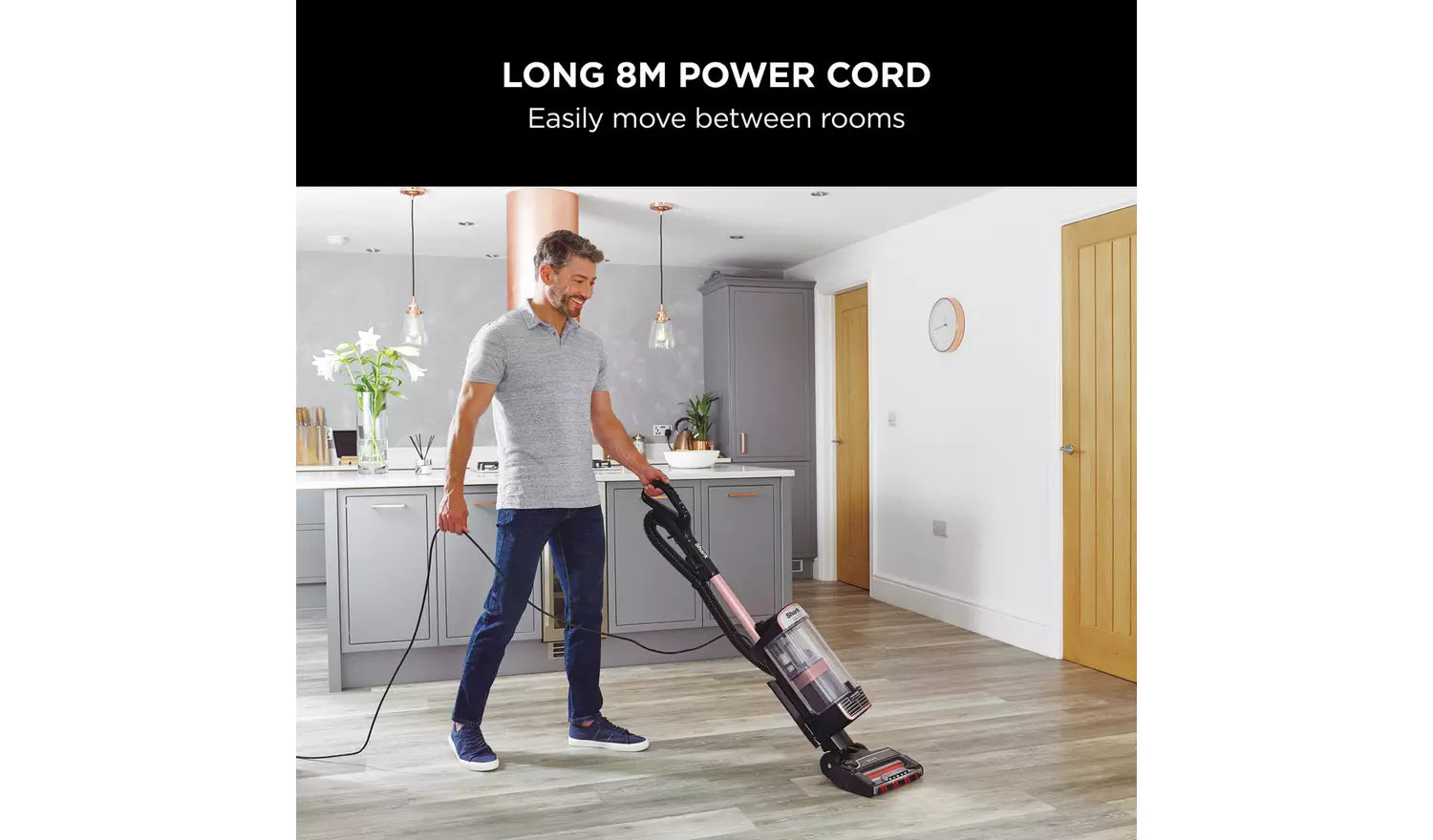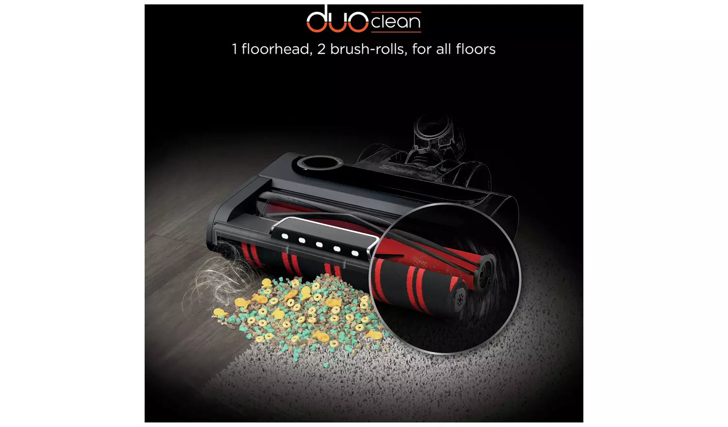Introducing Shark Stratos. This powerful corded upright vacuum delivers Shark's best ever hair pick-up with Anti Hair Wrap Plus, removing hair from the brush-roll as you clean. Perfect for long, short and pet hair. Glide from carpets to hard floors with DuoClean – 2 brush-rolls in 1 floorhead. The Anti Hair Wrap Plus brush-roll cleans deep into carpets, drawing out embedded dirt and picking up hair, while a soft front brush-roll pulls in debris and lifts stuck-on dust from hard floors. LED headlights illuminate hidden dust and pet hair.