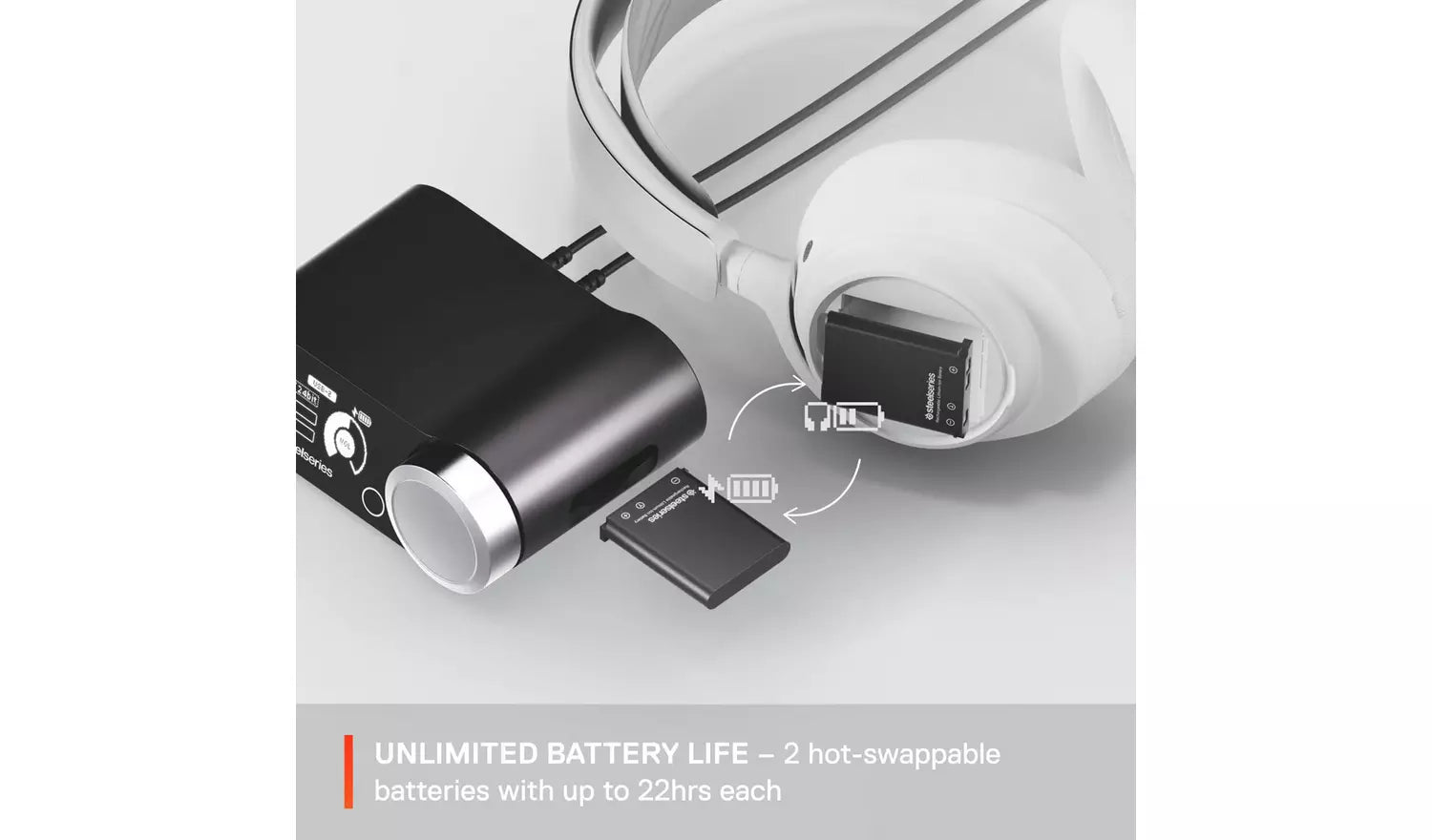 2 Batteries for No Downtime Low battery? With two hot-swappable batteries, it's no big deal. Just reload and keep going. Up to 22 hours per battery.