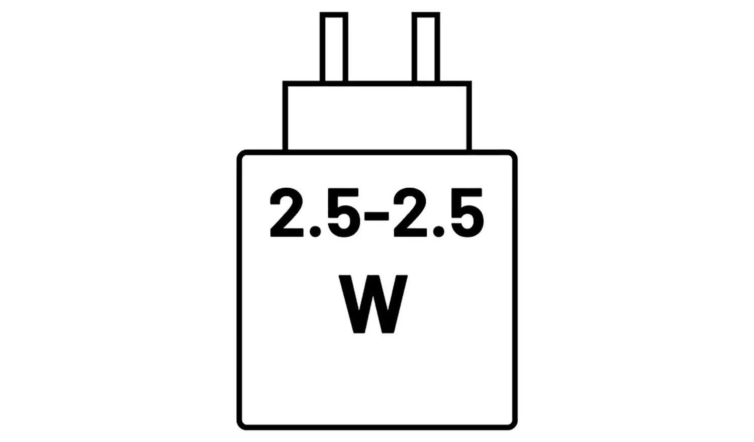- The required output of a suitable charging device is 2.5W minimum and 2.5W maximum.